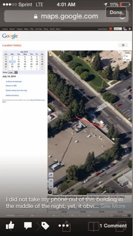 A few days before its destruction, the iPhone was taken by someone, just as it has been in times past, such as the when demons borrowed it to take their own picture at a downtown library in San Jose, as described in PHOTO | Demons use my phone to take after-hours photo at library. In fact, I wrote about it to my Facebook audience, stating that my iPhone went into someone's car and into the bushes just outside the shelter I was in at the time before mysteriously being returned to me, all without me knowing until I checked its location history later: