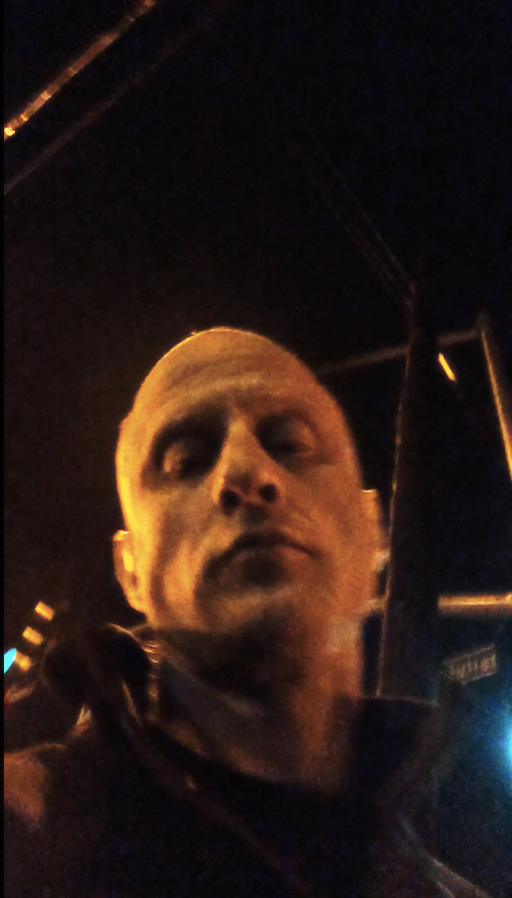 | Yet another still frame from a video made on or around the same night as the video that is the subject of this post; you can't really see the golden teeth bearing down on my head from behind | With edits, and if you squint, you can barely see the golden-spiked weapon; if this is all I had, I would never mention the assaults |
