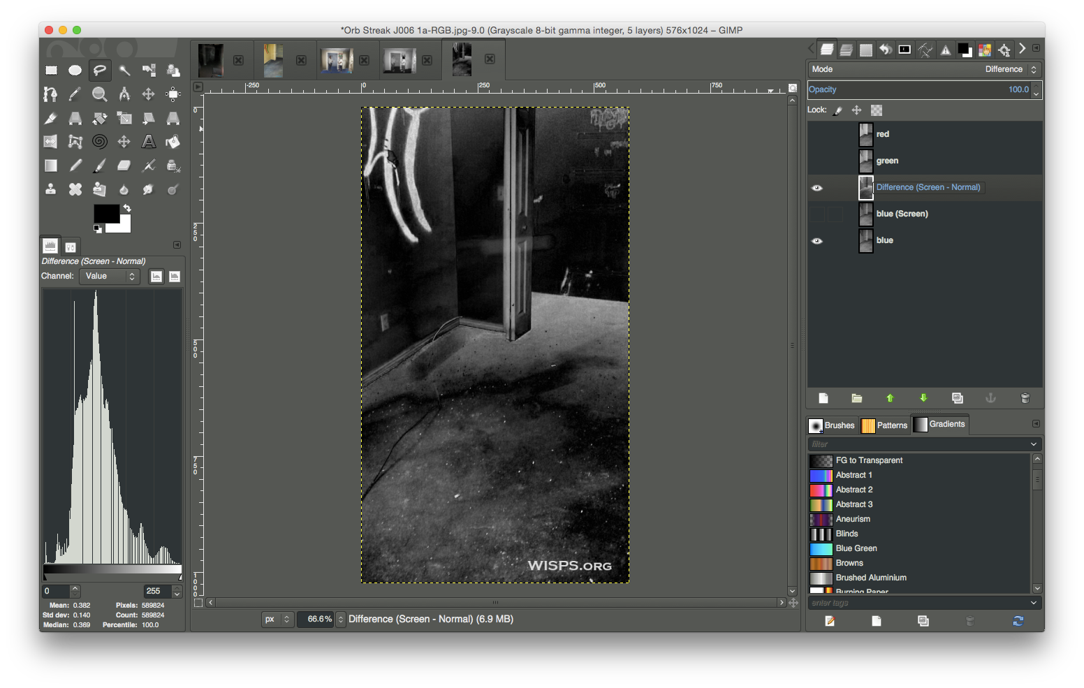 Gary Carter, Wasatch Investigative Society for Paranormal Studies, who estimates that 90% of his caseload involves demonic activity, sent three images to be evaluated, two of which "I know have demons in them," he said. Applying the aforementioned quick-search method, wisps—as he calls them—were found in all three images, and made a sure-fire case for reclassifying wisps as sucker demons (a very serious problem), underscoring the importance of and need for post-processing digital media using scientific image-mapping techniques:
