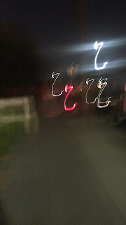 Because they were drawn by motion-blurred light trails, which could easily fool someone into thinking that a streak of light is that and only that, I chose only the characters shown in other videos and seen in my experience, as well as at least one character that has already appeared on this blog numerous times: